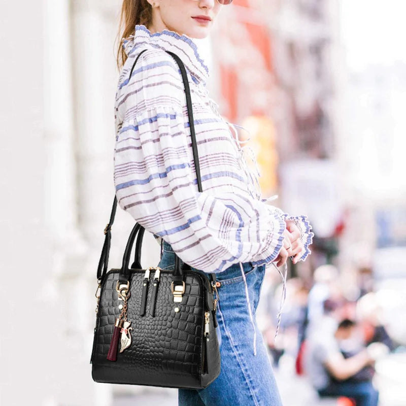 - Design exclusivo com textura de crocodilo para estilo marcante.