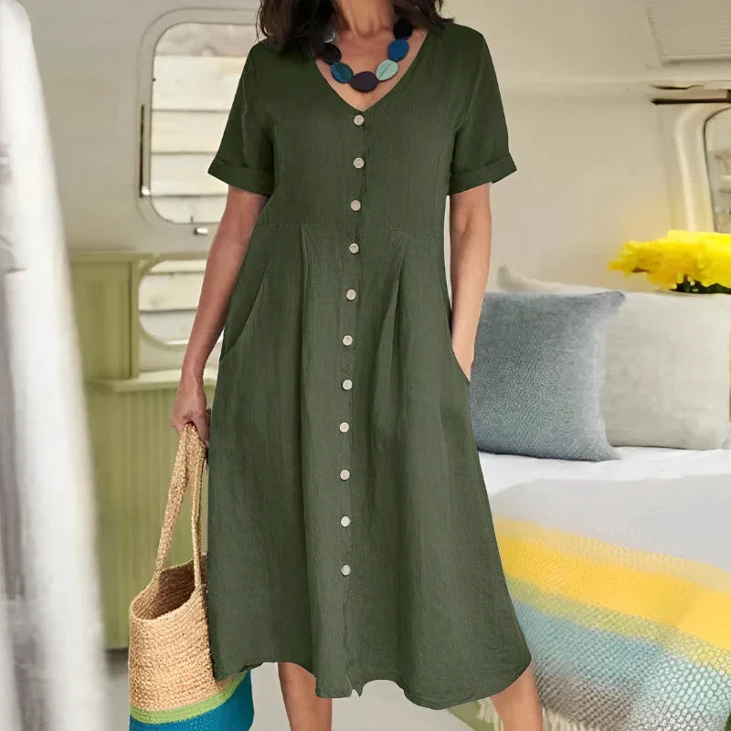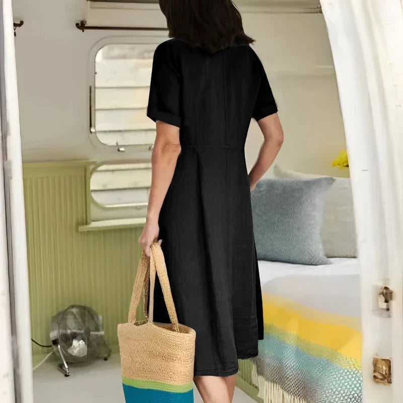 Bolsos Funcionais: Adicione praticidade ao seu estilo com bolsos que tornam o Chemise Vestido ainda mais funcional.