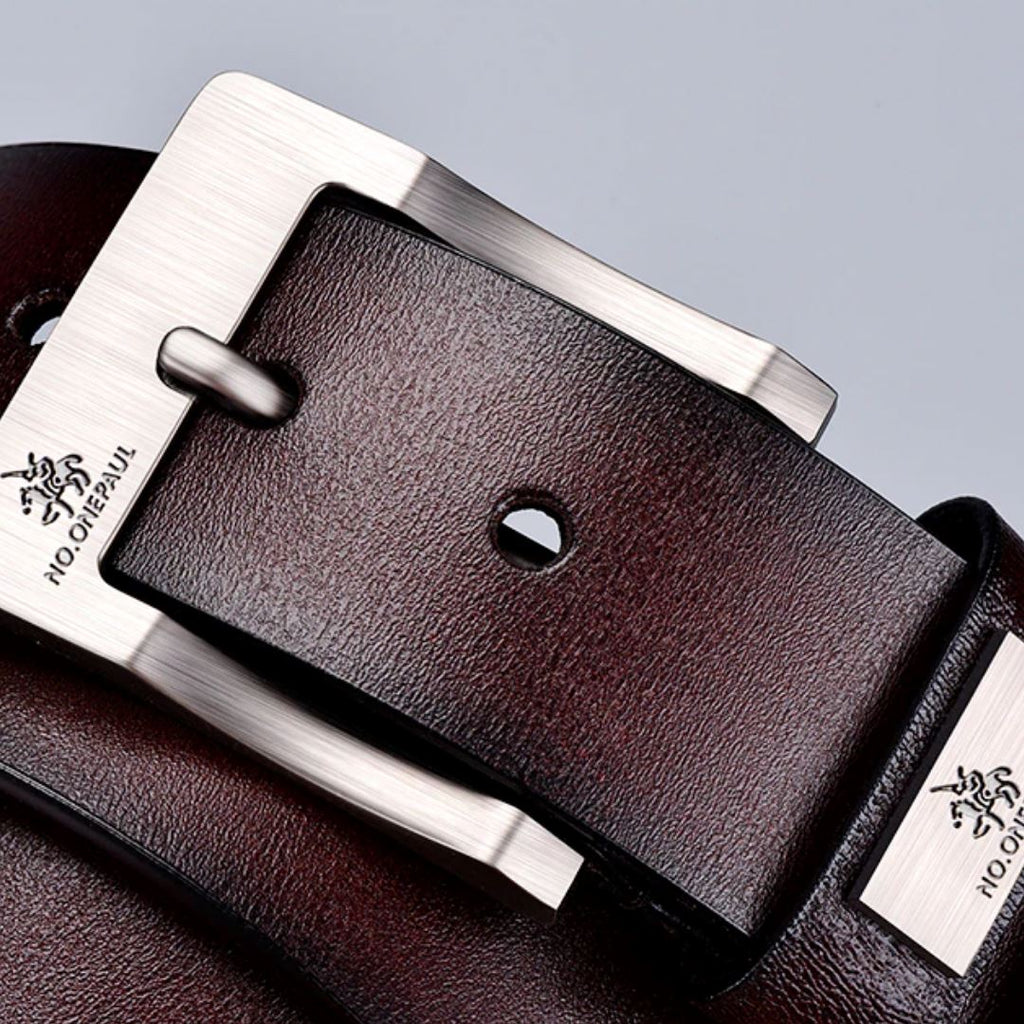 Fabricado com couro de alta qualidade, este cinto oferece durabilidade excepcional e um visual sofisticado que melhora com o tempo.