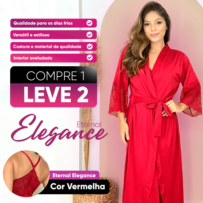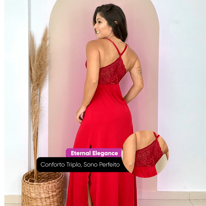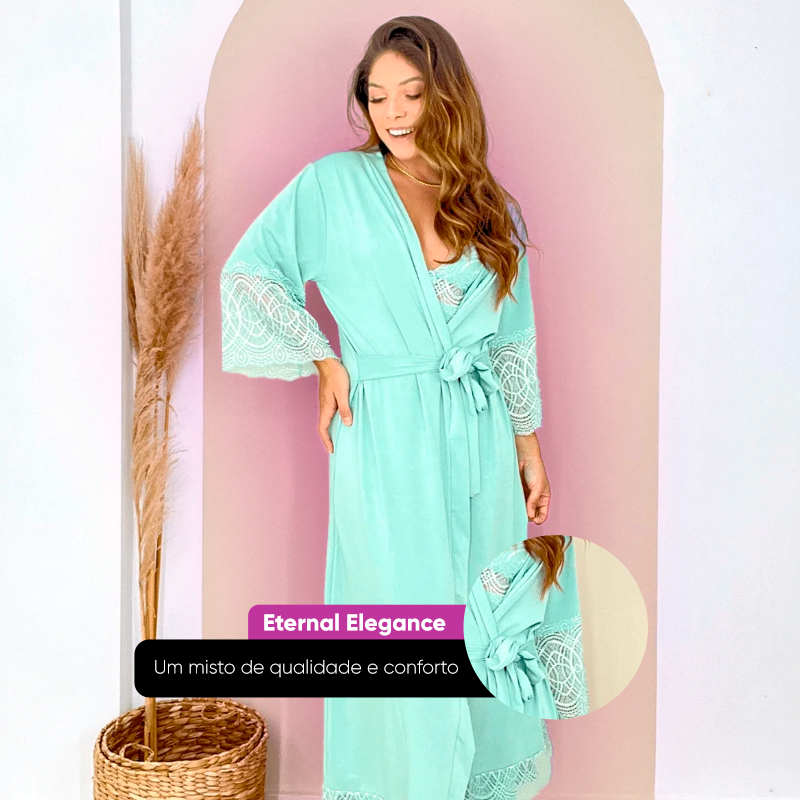 Desfrute do toque inebriante dos tecidos mais luxuosos do mercado. Nossa camisola longa é confeccionada com materiais de qualidade premium que não apenas acariciam sua pele com suavidade, mas também garantem uma durabilidade que você pode confiar. E o melhor, na compra de uma, você leva duas "Eternal Elegance" para aproveitar ainda mais!