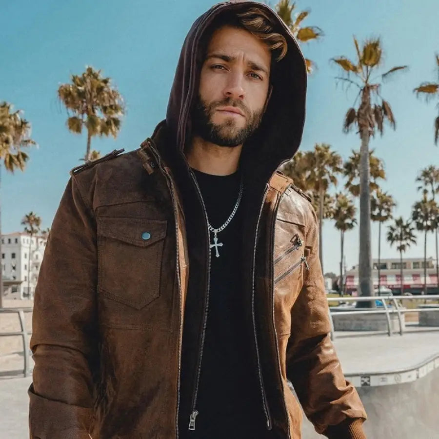 JAQUETA DE COURO PREMIUM COM CAPUZ REMOVÍVEL — IDEAL PARA HOMENS MODERNOS E ESTILOSOS!