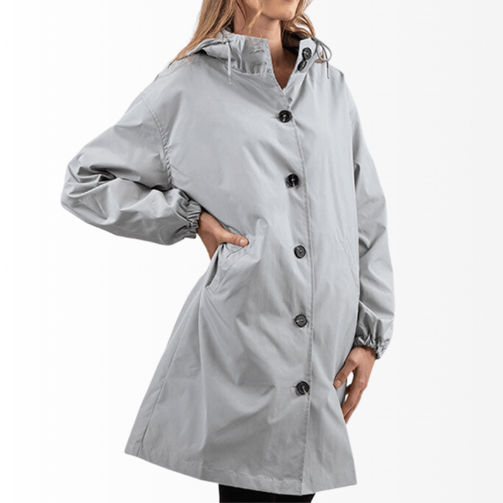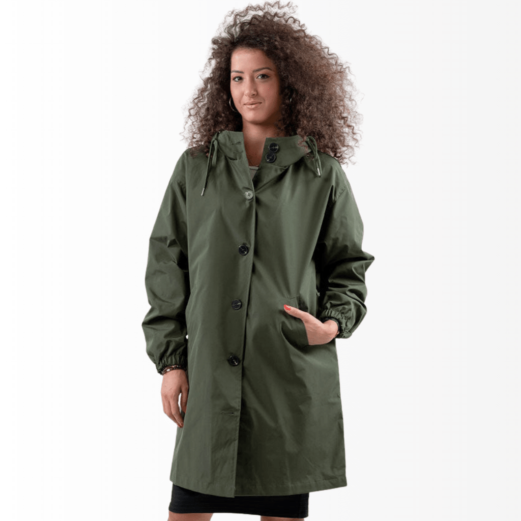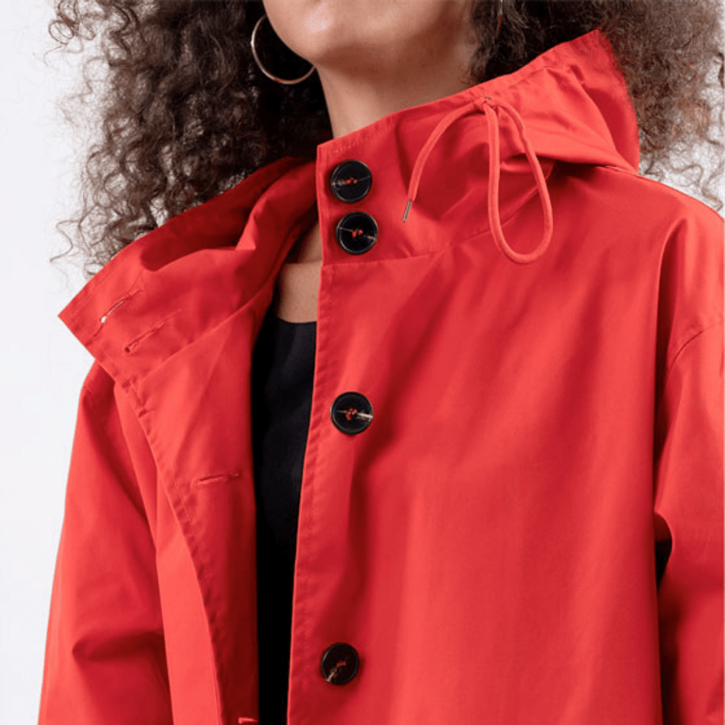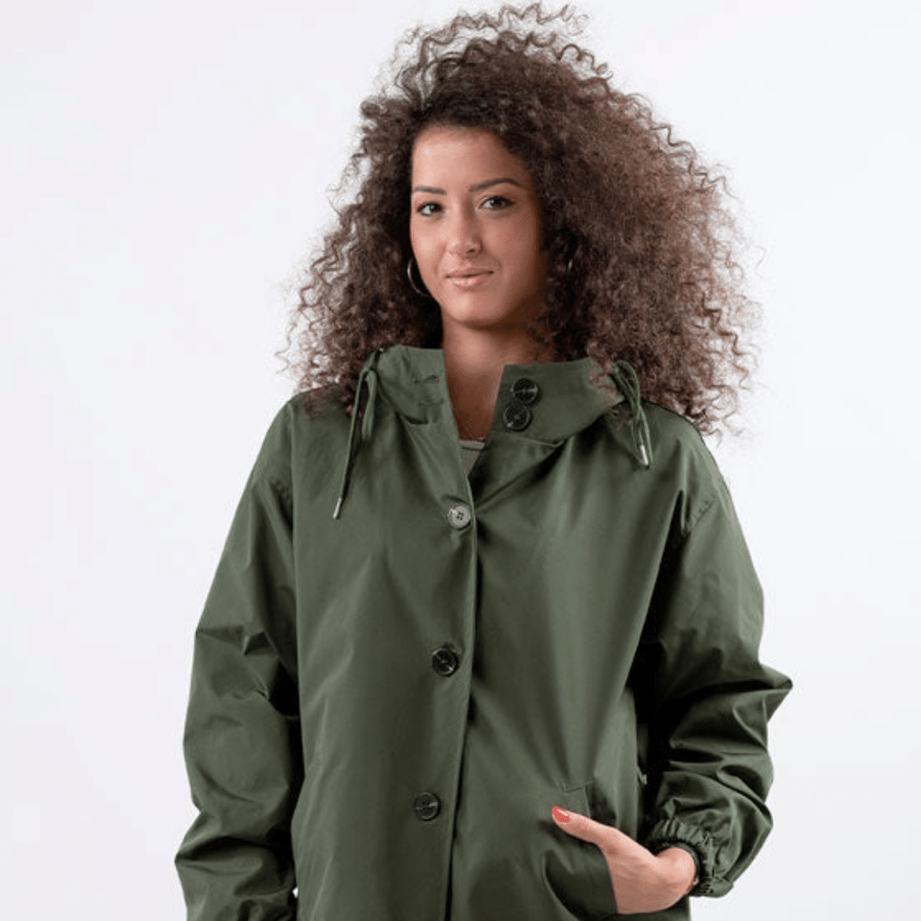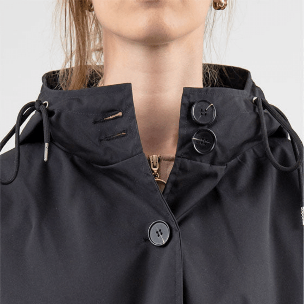 Casaco Corta Vento feito com um tecido impermeável à água, perfeito para aqueles dias chuvosos e com vento. Possui um caimento oversized, capuz, dois bolsos frontais, cordão embutido na cintura para o ajuste perfeito no seu corpo e fechamento por botões frontais.
