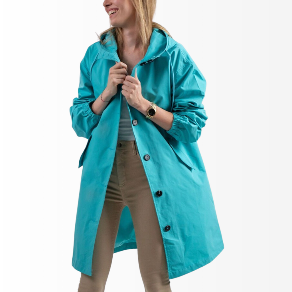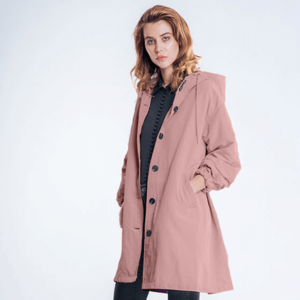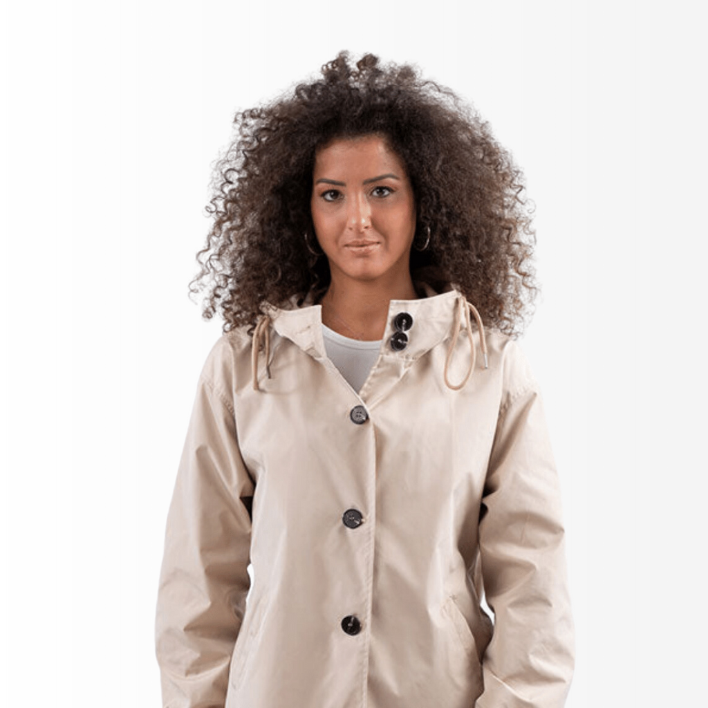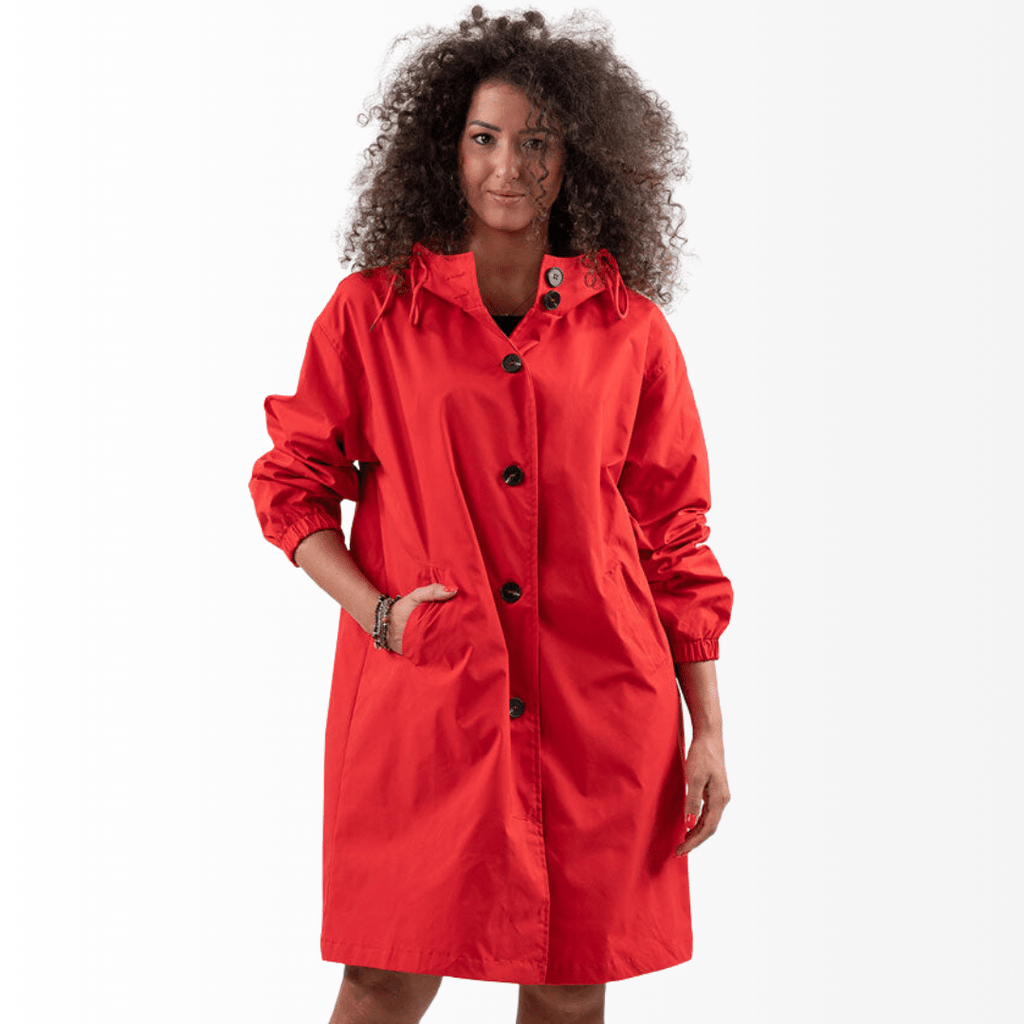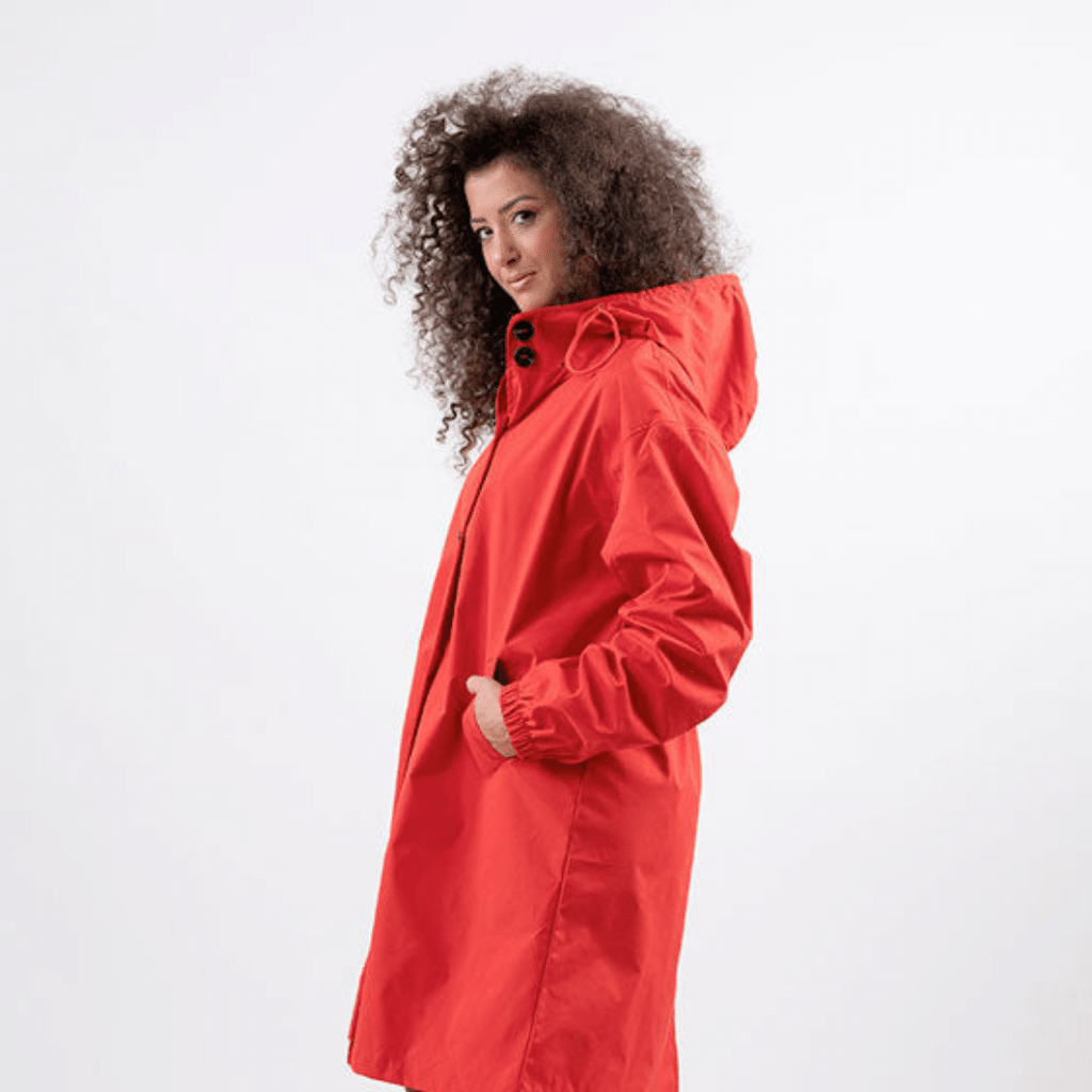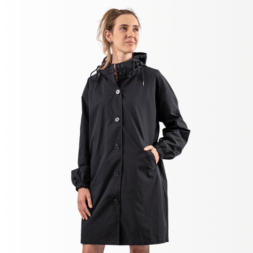Casaco Corta Vento feito com um tecido impermeável à água, perfeito para aqueles dias chuvosos e com vento. Possui um caimento oversized, capuz, dois bolsos frontais, cordão embutido na cintura para o ajuste perfeito no seu corpo e fechamento por botões frontais.