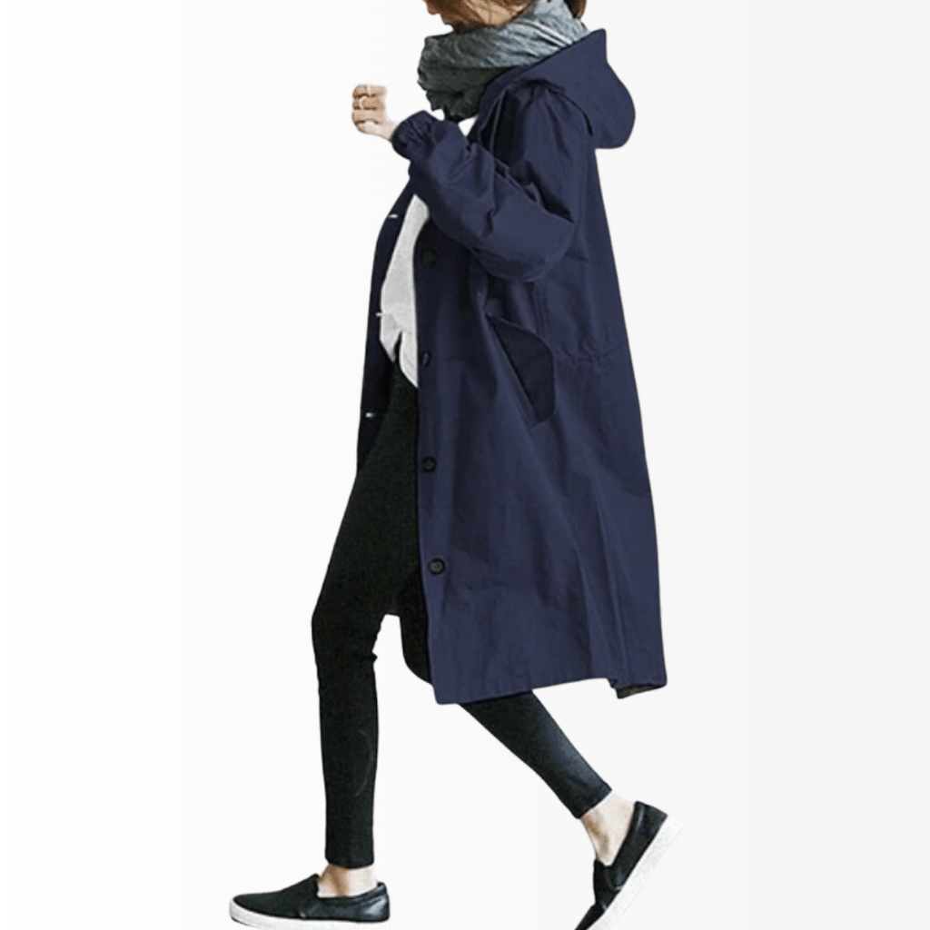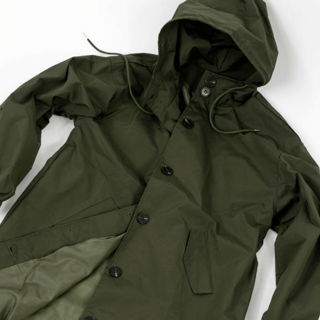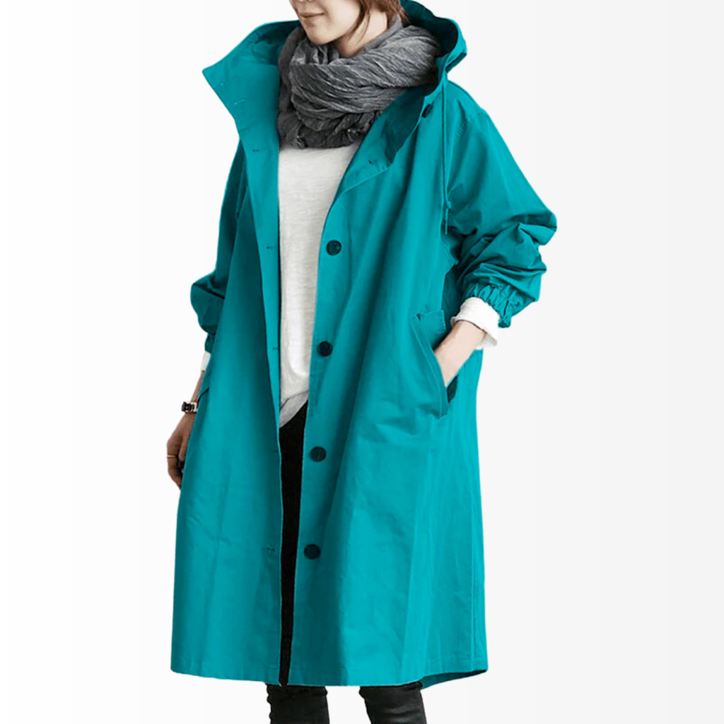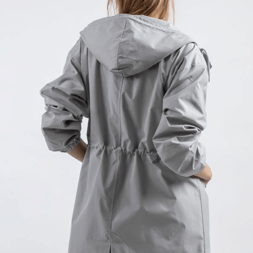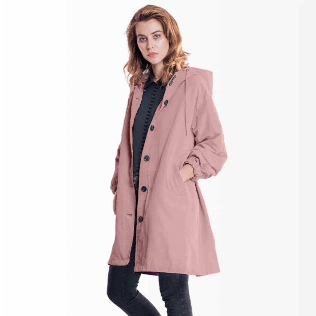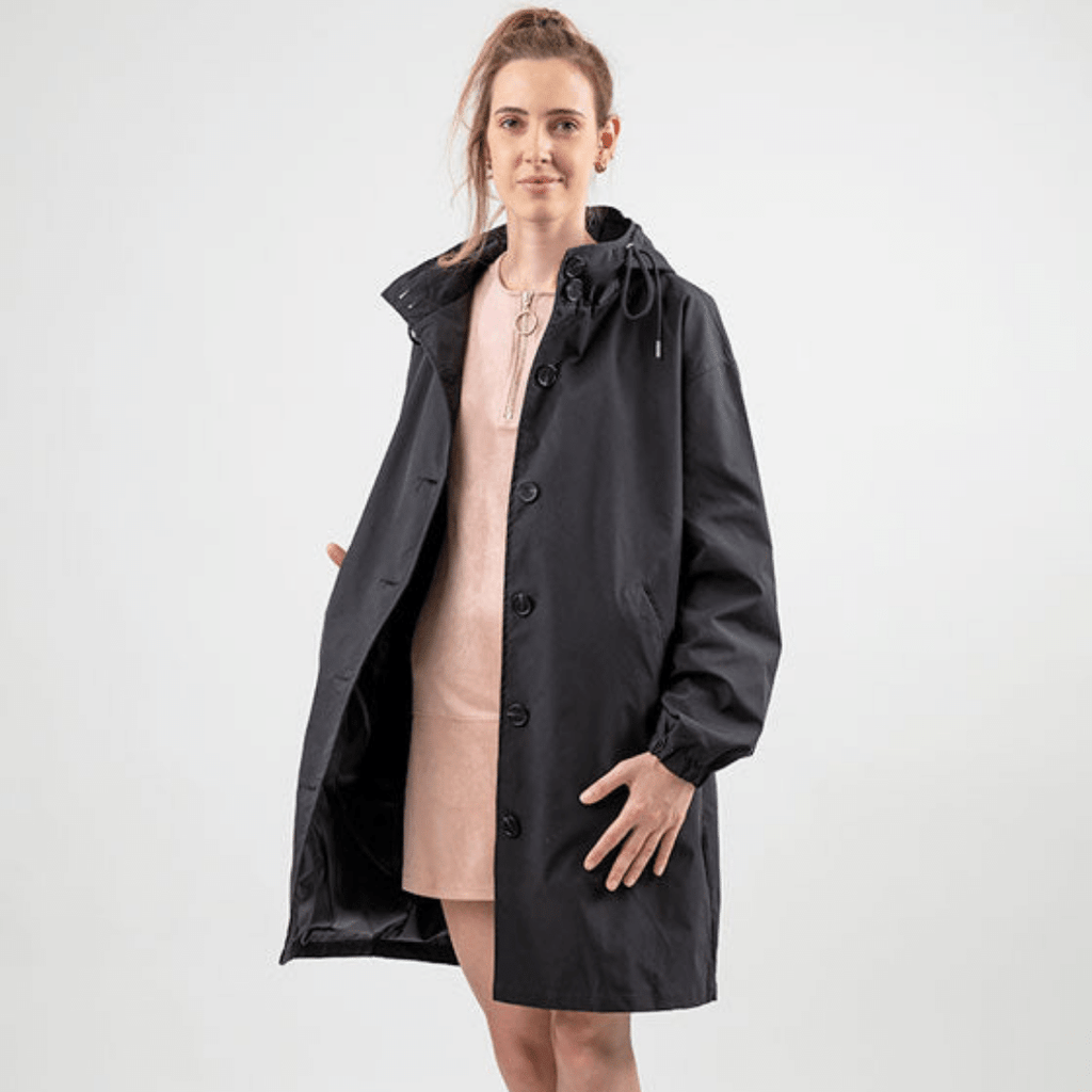 Casaco Corta Vento feito com um tecido impermeável à água, perfeito para aqueles dias chuvosos e com vento. Possui um caimento oversized, capuz, dois bolsos frontais, cordão embutido na cintura para o ajuste perfeito no seu corpo e fechamento por botões frontais.