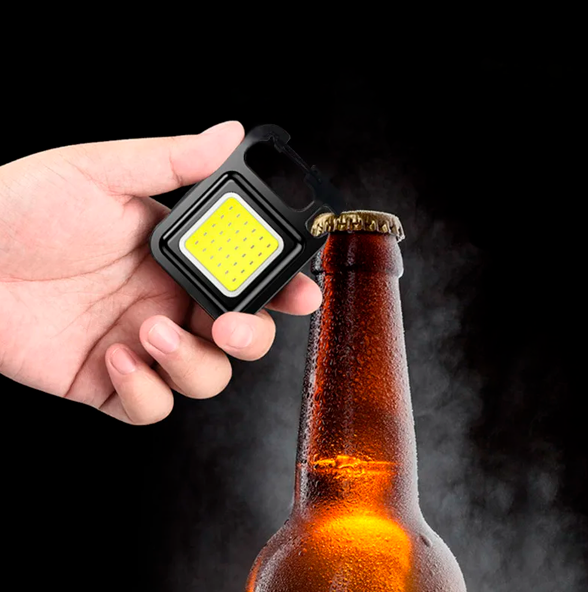 Super potente, brilha com até 10 vezes mais potência do que as lanternas comuns, desligada, se transforma em um abridor de garrafa e pode ser usada como chaveiro