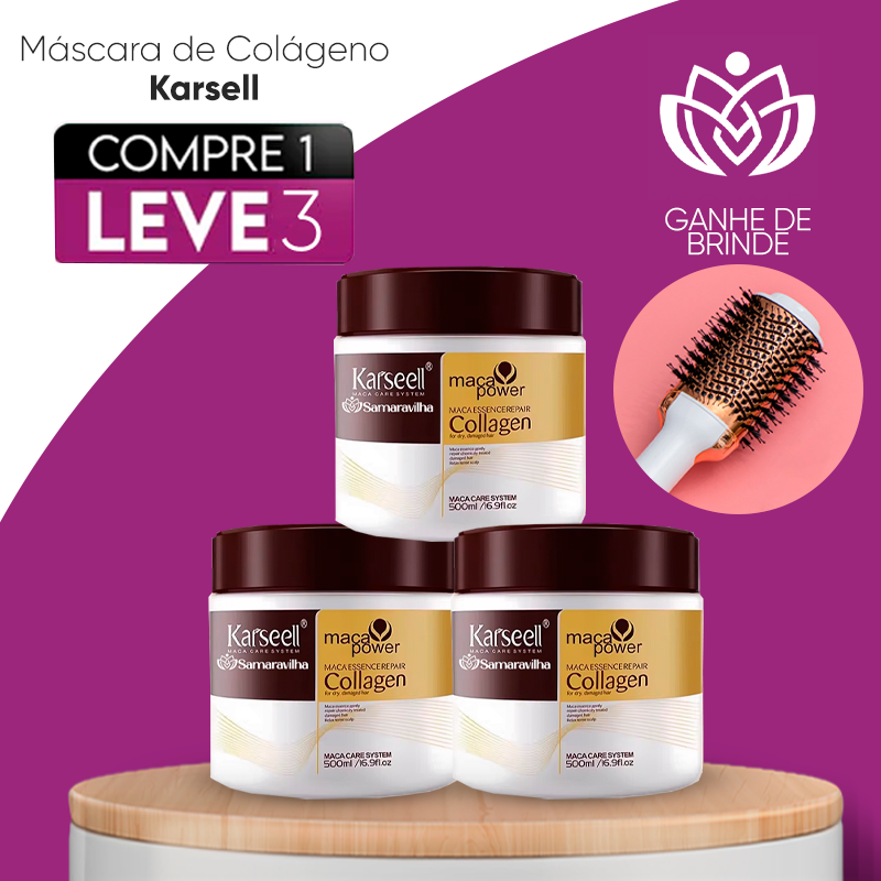 Ao adquirir, você receberá 3 máscaras de colágeno alemã Karseell de 500/10g cada, garantindo uma nutrição profunda e um cabelo renovado.