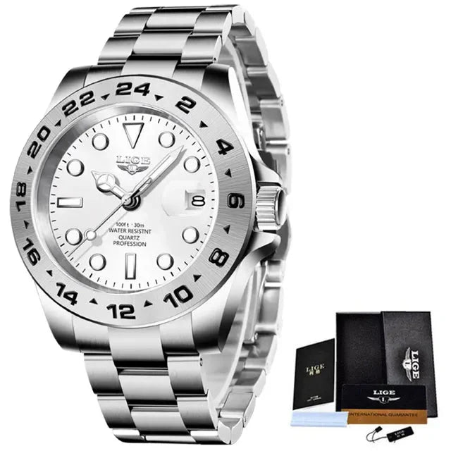 Fabricado com materiais premium, como aço inoxidável e vidro de cristal resistente a arranhões, este relógio é durável e resistente ao desgaste do uso diário, mantendo sua beleza e funcionalidade ao longo do tempo.