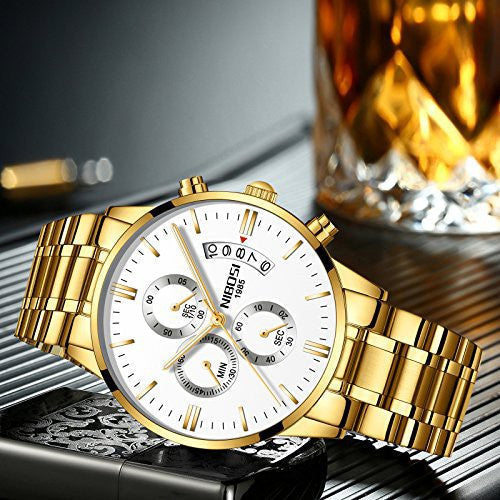 Acima de tudo, o Relógio Nibosi é resistente a água, desenvolvido em aço inoxidável, fazendo com que ele seja extremamente durável e resistente.