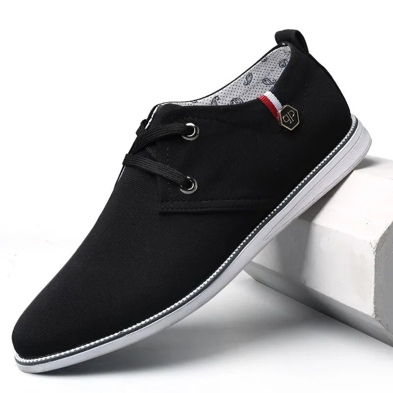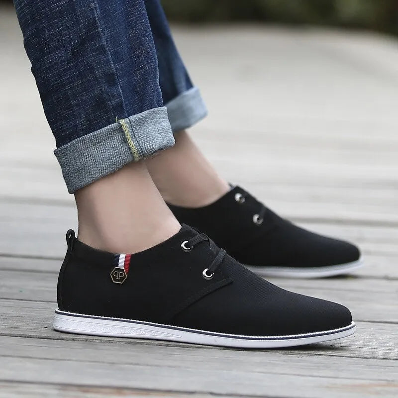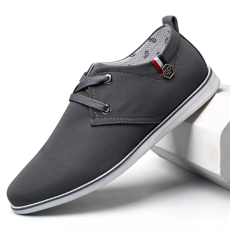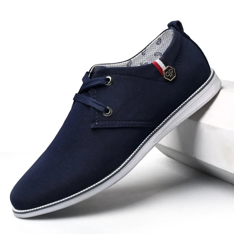 Com um tecido impermeável de alta qualidade, acabamento à mão e detalhes em metal dourado, o Sapatênis Vanguard eleva seu estilo em cada detalhe. Sua sola de borracha antiderrapante oferece segurança máxima, tornando-o perfeito para qualquer ocasião. Disponível nas cores preto, azul e cinza, e em tamanhos do 36 ao 42.