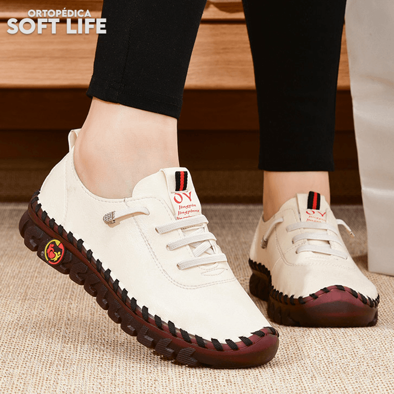 Se você está cansada de usar sapatos fechados o dia inteiro que machucam e apertam seus pés causando dor no final do dia, a SoftLife é o que você precisa! Nosso modelo se adapta corretamente ao formato dos pés, não apertando os pés e nem prendendo a circulação sanguínea no local.