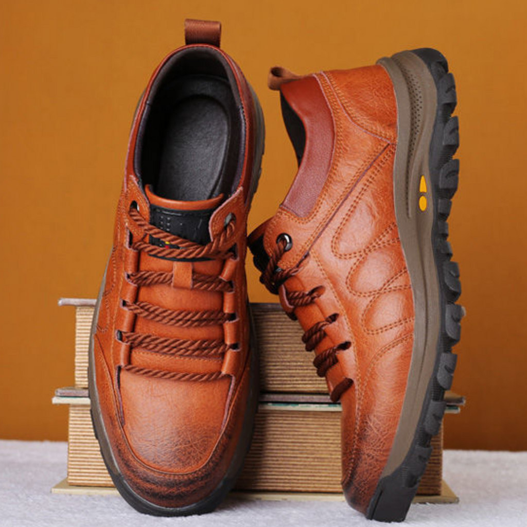 Feito em couro premium para garantir a máxima qualidade aos seus pés e proporcionar um caminhar mais confortável e sem dores; O tênis possui um corpo respirável para bloquear a proliferação de bactérias e não causar maus odores.
