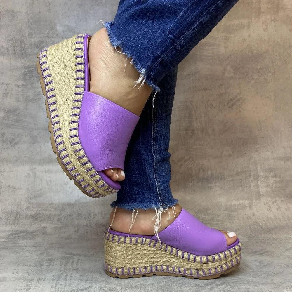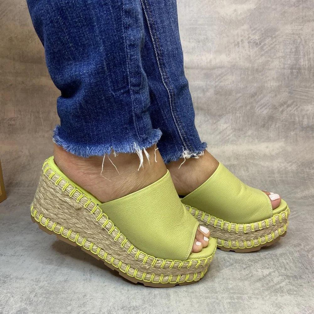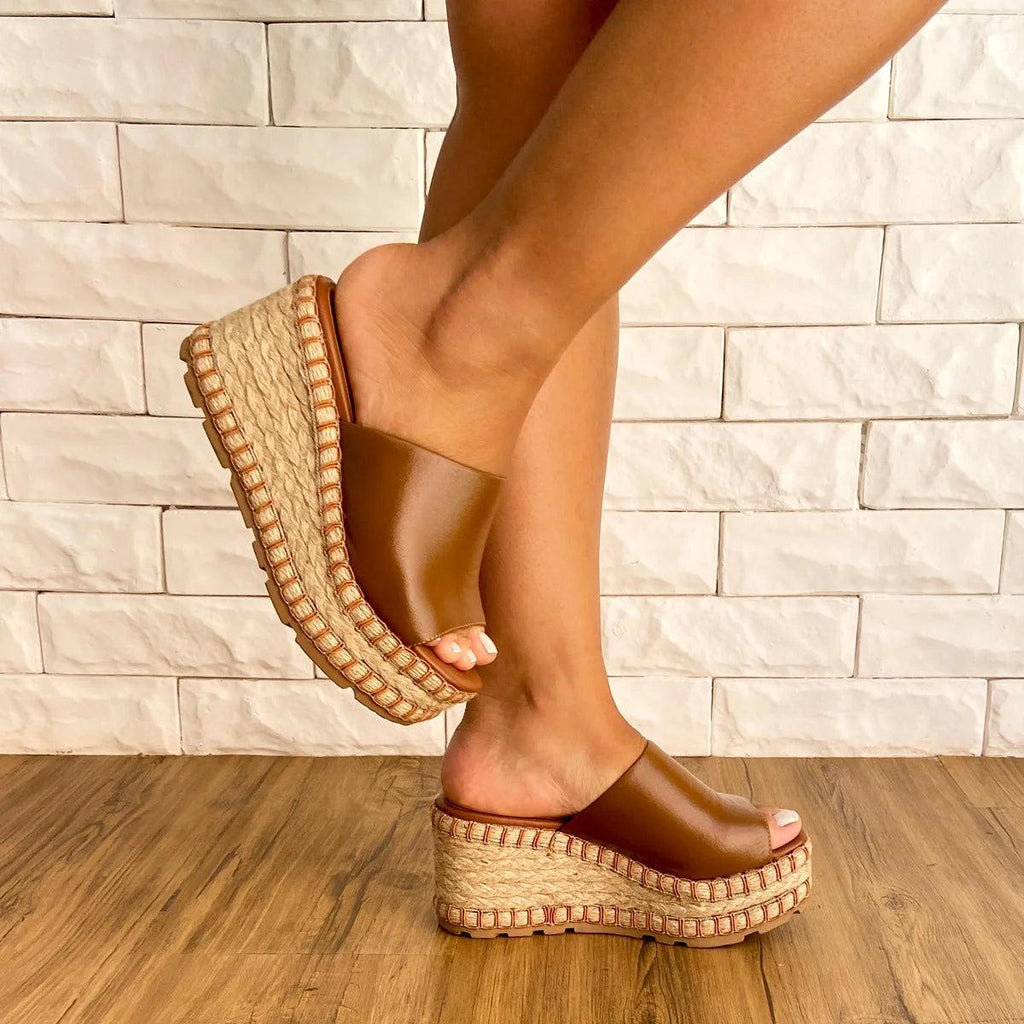 - 1 Par de Tamanco Plataforma em Couro Salto Corda - Isabel