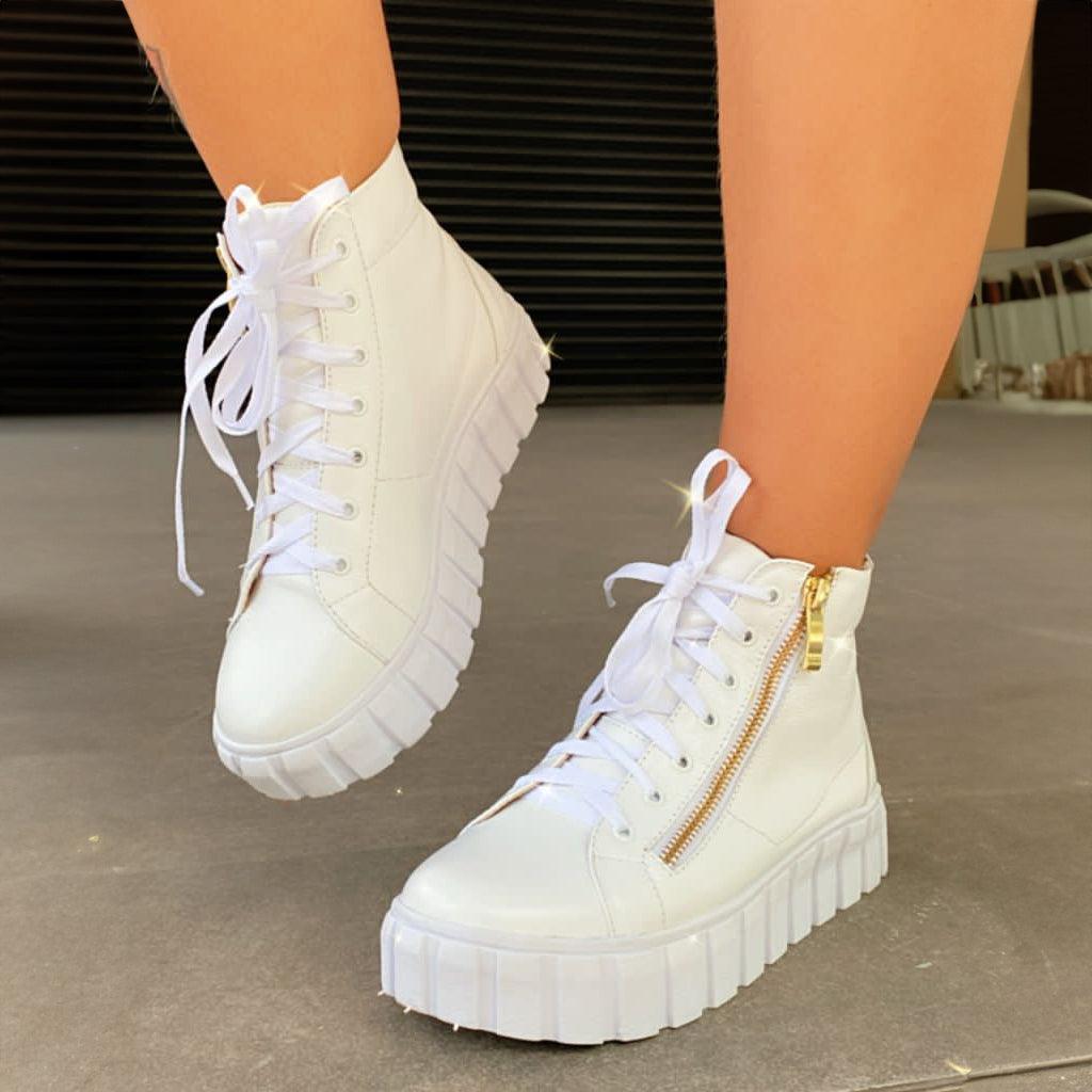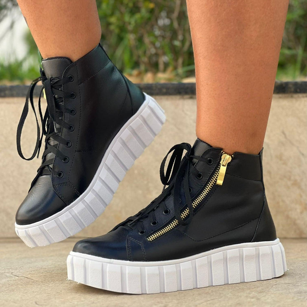 Descubra a combinação única de conforto urbano e estilo inovador com o Tênis Botinha de Couro Legítimo Zíper - Olívia. Fabricado com couro legítimo de alta qualidade, o Tênis Olívia exibe um design inovador que combina a praticidade do cotidiano com um estilo moderno e urbano. Com seu formato de botinha e zíper para fácil colocação, é perfeito para todas as estações e se adapta facilmente a qualquer look.