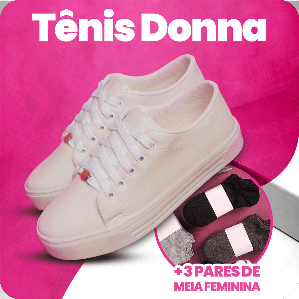 Aproveite esta oferta especial e renove seu guarda-roupa com dois pares do Tênis Feminino Donna e 3 pares de meia feminina! Garanta o máximo de conforto e estilo para o seu dia a dia. Não deixe essa oportunidade de passar e adquirir já o seu kit completo!