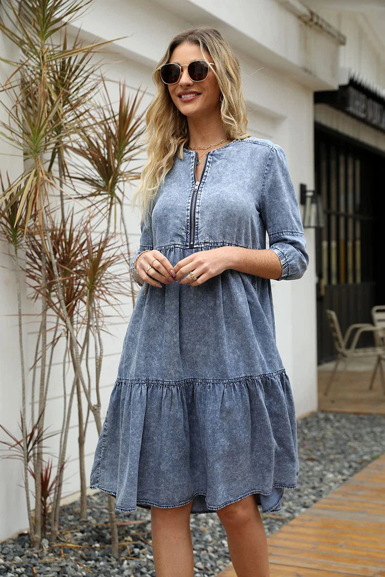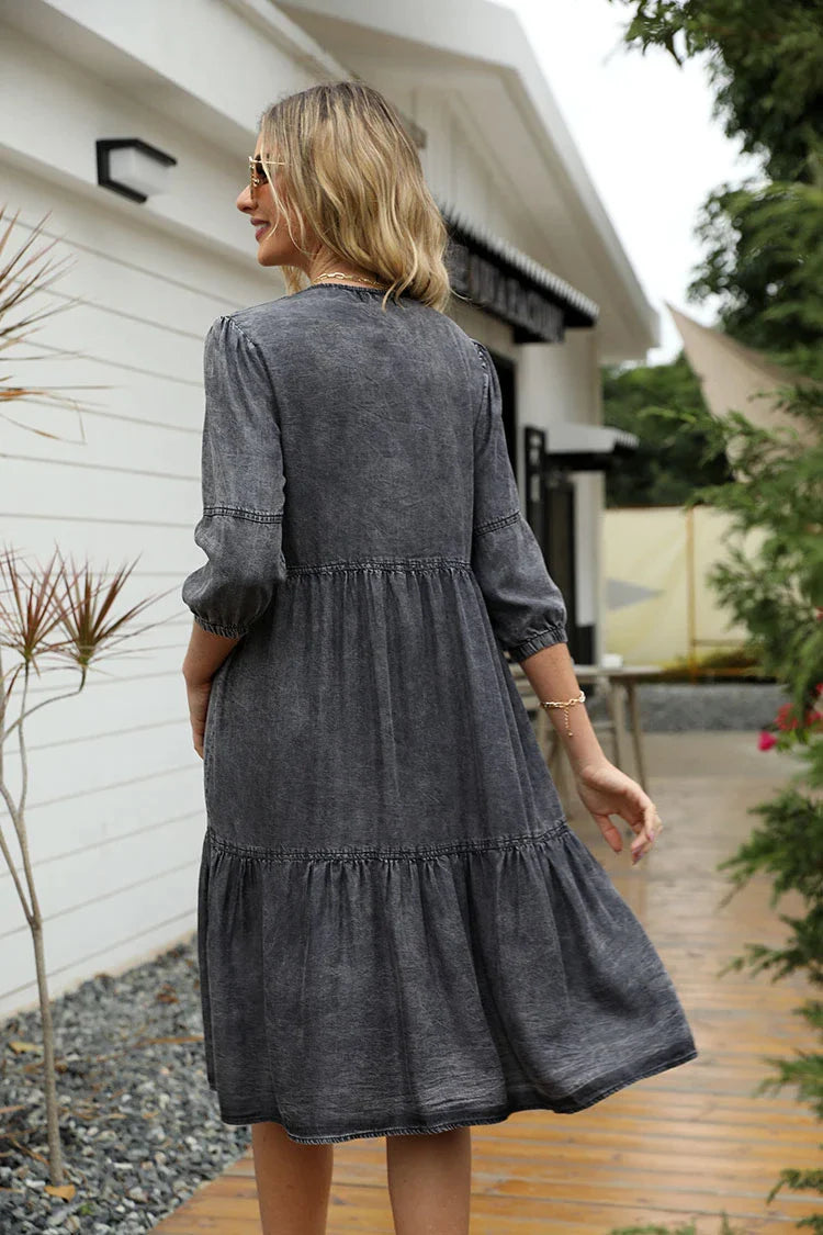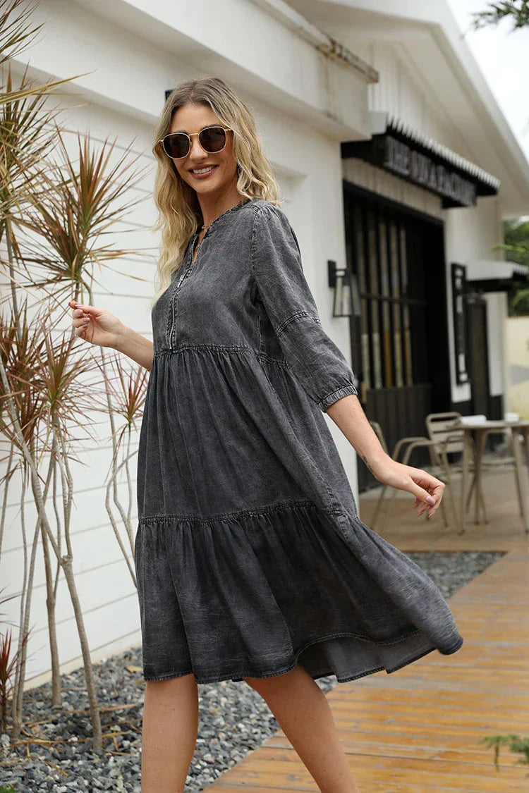 Com seu design midi e corte solto, este vestido é ideal para mulheres que desejam conforto e estilo em uma única peça. Feito com jeans de alta qualidade, ele oferece durabilidade e um caimento impecável.